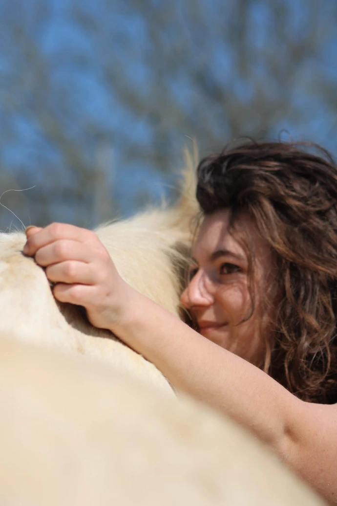 Ma seconde jument a été une nouvelle étape. Elle m’a poussée à développer mes ressentis, à travailler plus finement les équilibres énergétiques et à m’exercer d’abord en douceur sur mes propres animaux, puis auprès d’autres.