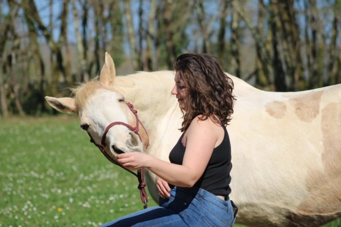Ma seconde jument a été une nouvelle étape. Elle m’a poussée à développer mes ressentis, à travailler plus finement les équilibres énergétiques et à m’exercer d’abord en douceur sur mes propres animaux, puis auprès d’autres.